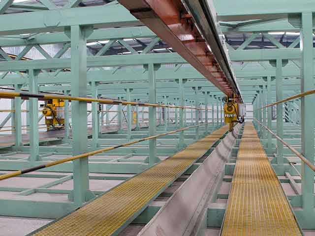 實例:塔式生產線:鋅鍋13.5×2.8×3.5(m),8個酸性罐,2個洗滌槽,1個輔助罐,高速天然氣脈沖加熱(6個燃燒器),年生產能力120000噸。
